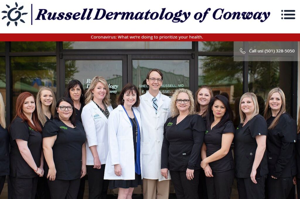 Russell Dermatology Clinic strives to deliver efficient, quality, compassionate, comprehensive, and patient-centered skincare. We endeavor to provide a team-oriented, productive work environment. We work to be responsible corporate citizens and contributing members of the community through education and service. We like to emphasize that we are the ONLY dermatologists in Conway that live in the community we serve.