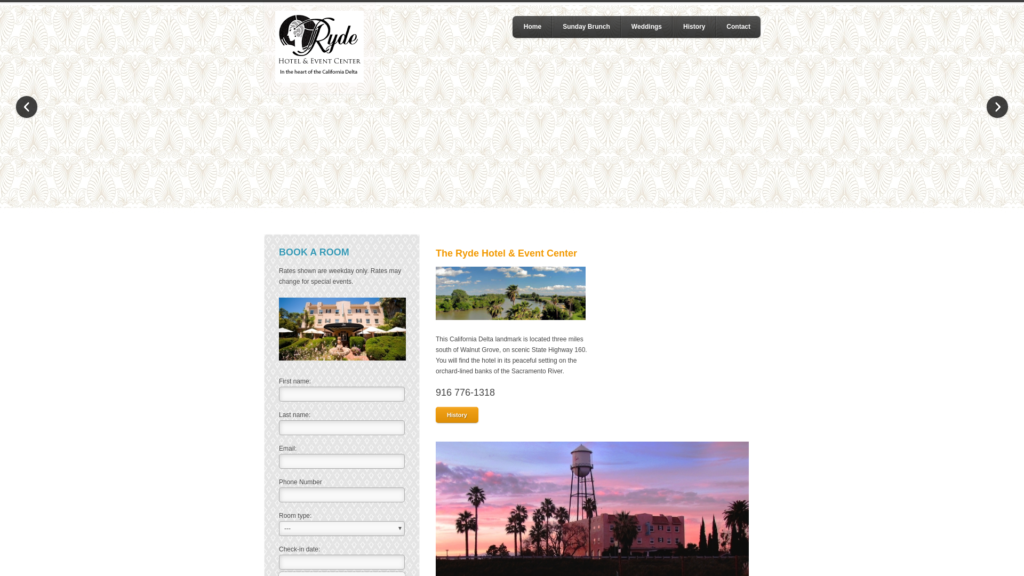 This California Delta landmark is located three miles south of Walnut Grove, on scenic State Highway 160. You will find the hotel in its peaceful setting on the orchard-lined banks of the Sacramento River.
