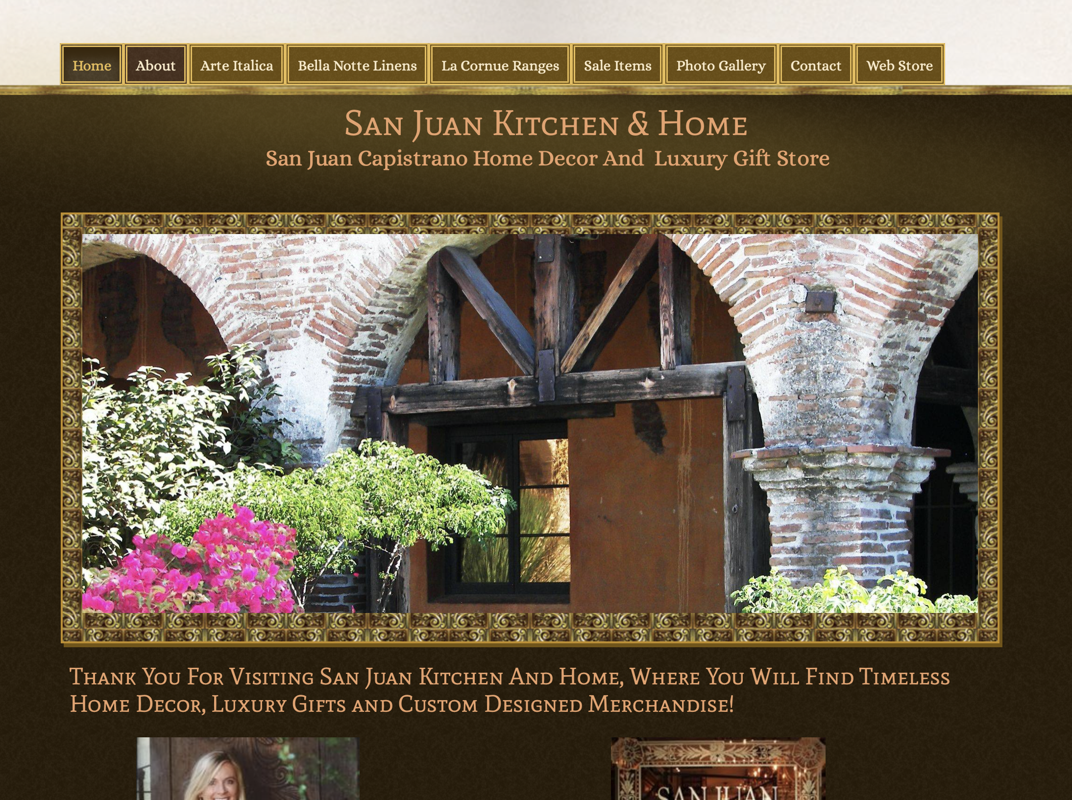 store you are transcended into a time and place reminiscent of old town San Juan Capistrano. Luxury Items and a Treasure Trove of Gifts await you! Stunning designer merchandise such as Luxury Bedding, Decorative Accent pillows, Lush Faux Fur Throws, Exquisite Fabric Yardage, French Cookware, European Linens and Enchanting Gifts are just among the few treasures in store for you!