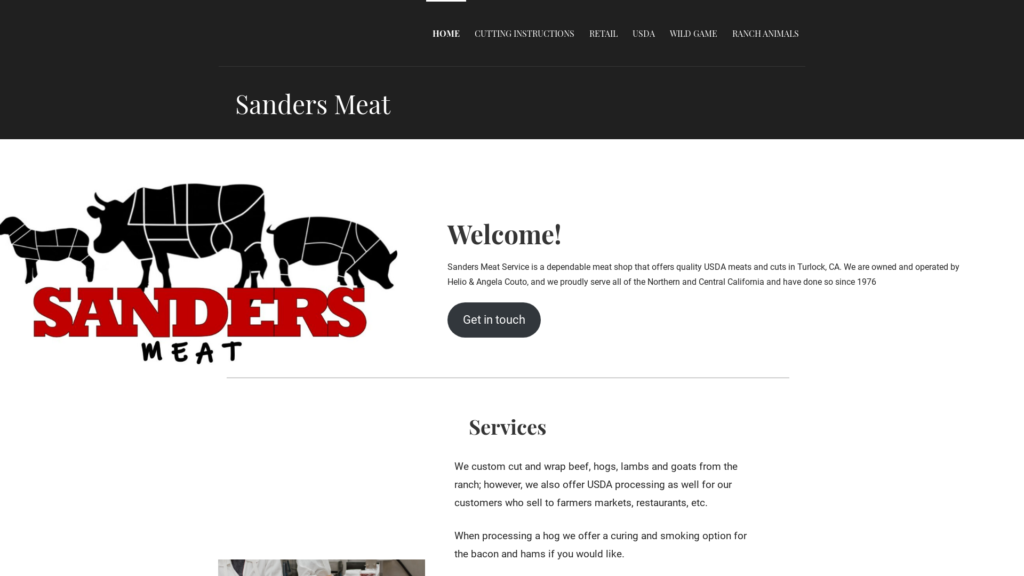 Sanders Meat Service is a dependable meat shop that offers quality USDA meats and cuts to the Turlock, CA area. We are owned and operated by Helio & Angela Couto, and we proudly serve all of the Northern and Central California. We cater to all occasions, and our game season is during hunting season (July-December) We will be available after hours up until 9:00 PM. Please call for an appointment.