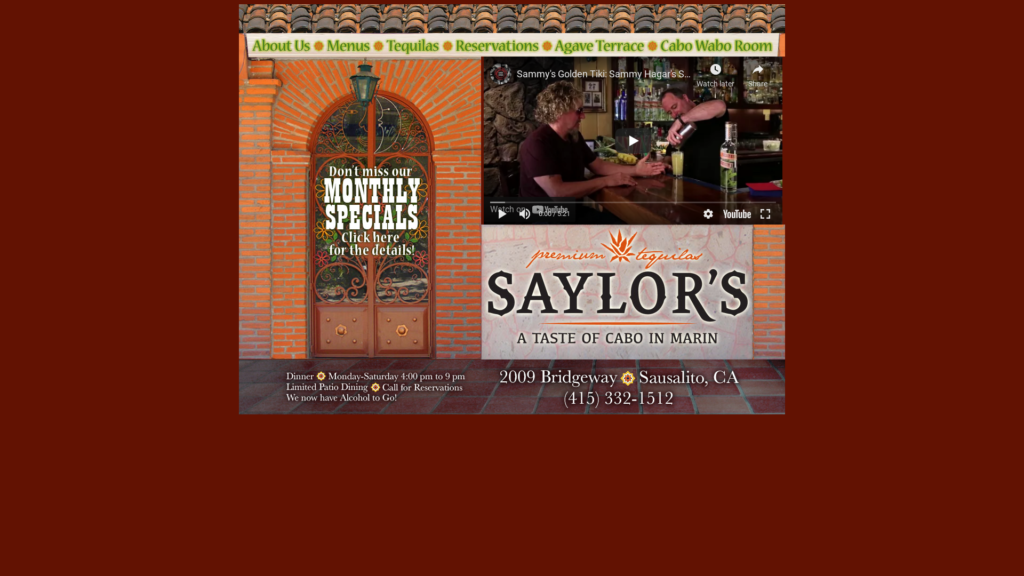 Enjoy the scrumptious cuisine of Cabo at this popular Cabo Wabo Restaurant in Sausalito, CA. Saylor's Restaurant and Bar offers the finest food and drinks!