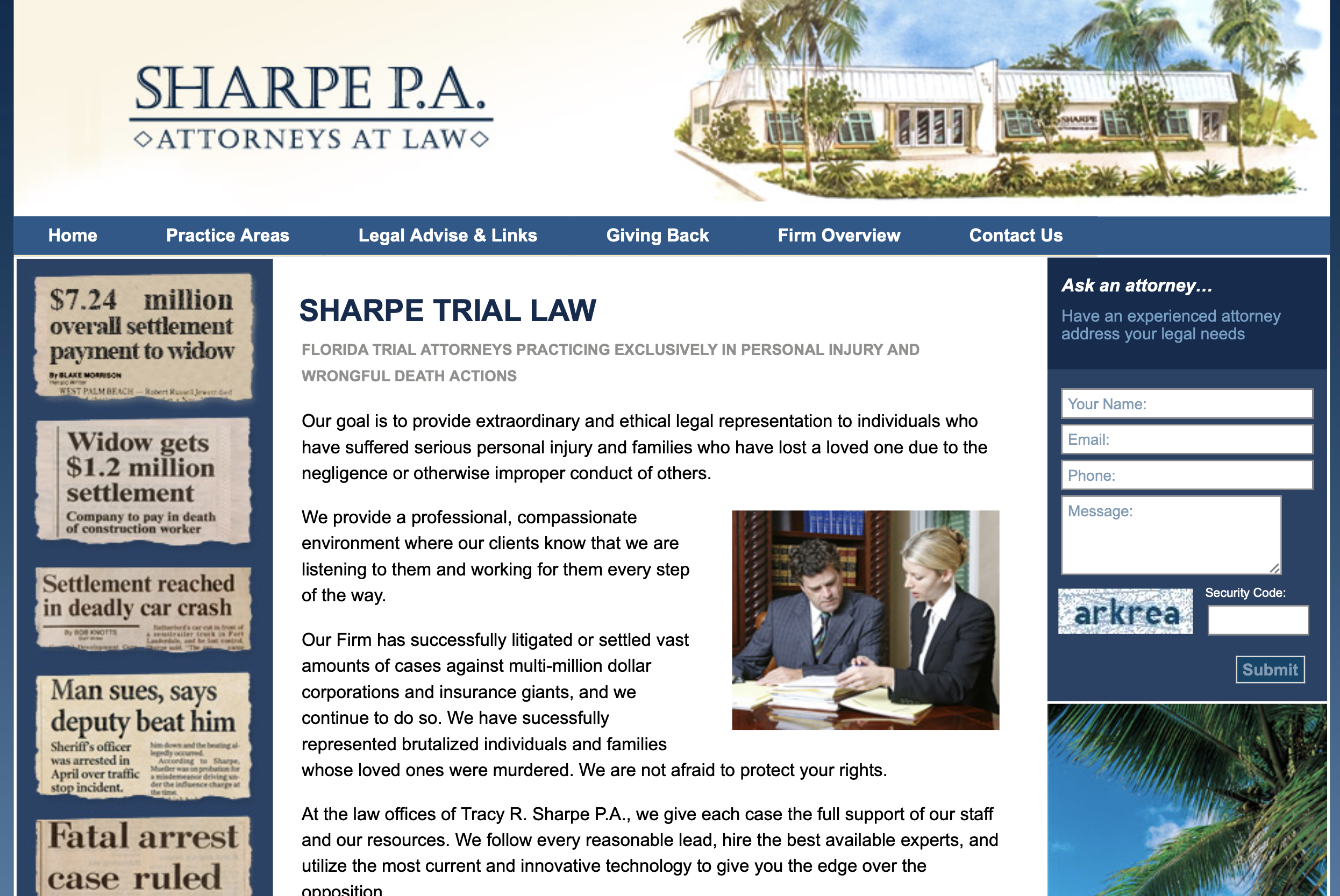 Sharpe Trial Law Florida are Attorneys Practicing Exclusively in Personal Injury and Wrongful Death Action, located in West Palm Beach, Florida.