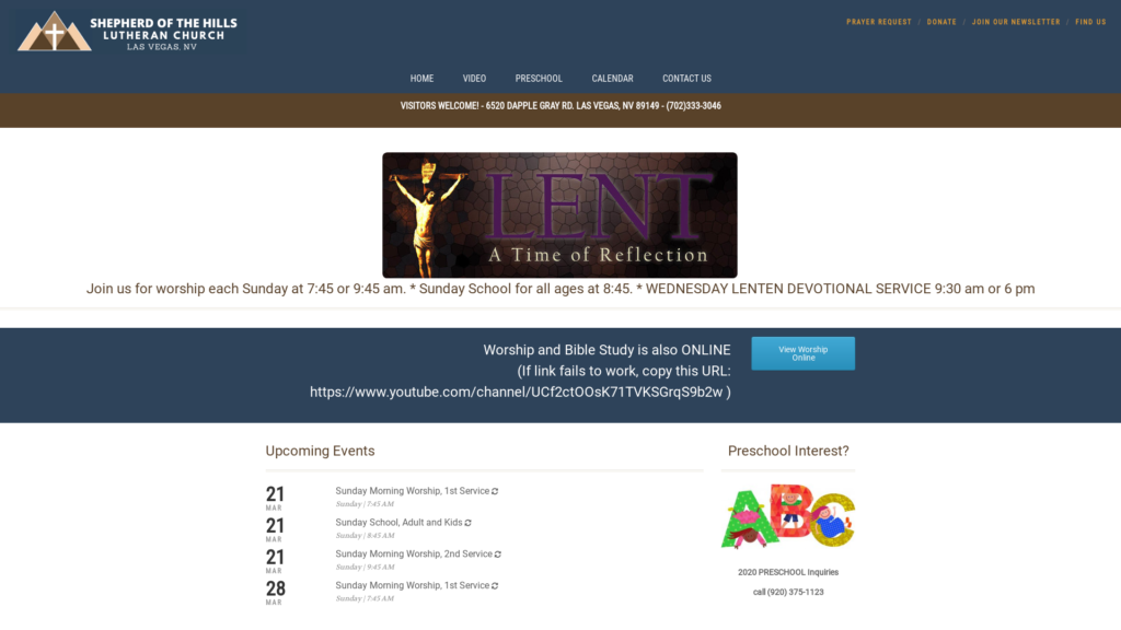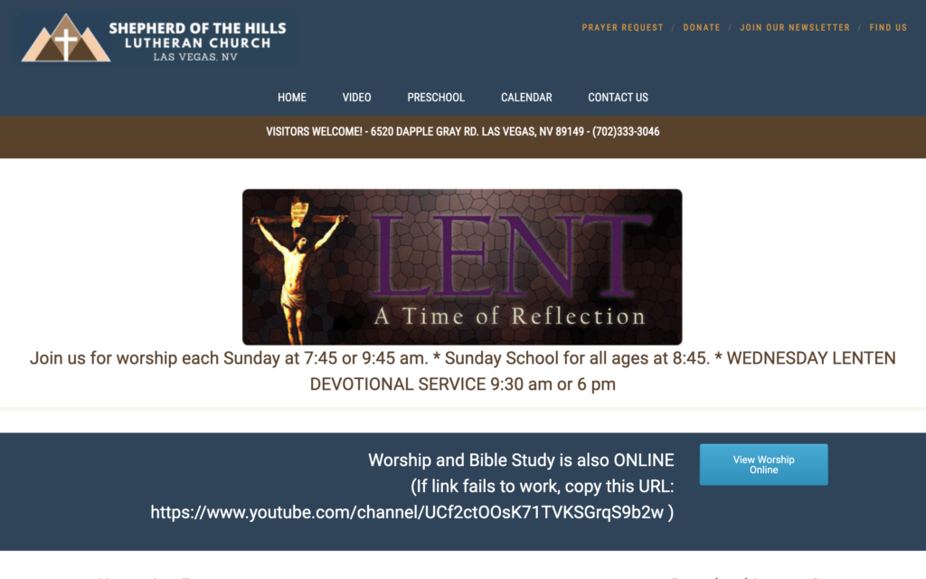 Shepherd of the Hills was formed in 2008 with support from Water of Life Lutheran Church and WELS, to share the saving love of Jesus with the people of northwest Las Vegas. We currently have approximately 130 members and are welcoming new people into our family every month.