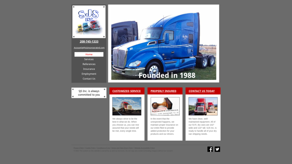 SJS Inc. is a family-owned and operated business based out of Rexburg, ID. Since 1988, our trucking company has been the preferred choice for hauling non-refrigerated items, including dry products, plastics, dehydrated potatoes, bagged grains, equipment, mail, and more throughout Idaho and the rest of the United States. We do not run the New England states, New Jersey, New York & California.