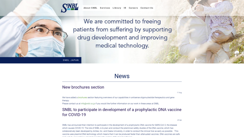 Our corporate mission is that “We are committed to freeing patients from suffering by supporting drug development and improving medical technologies.” This is the cornerstone of everything we do at SNBL Group.