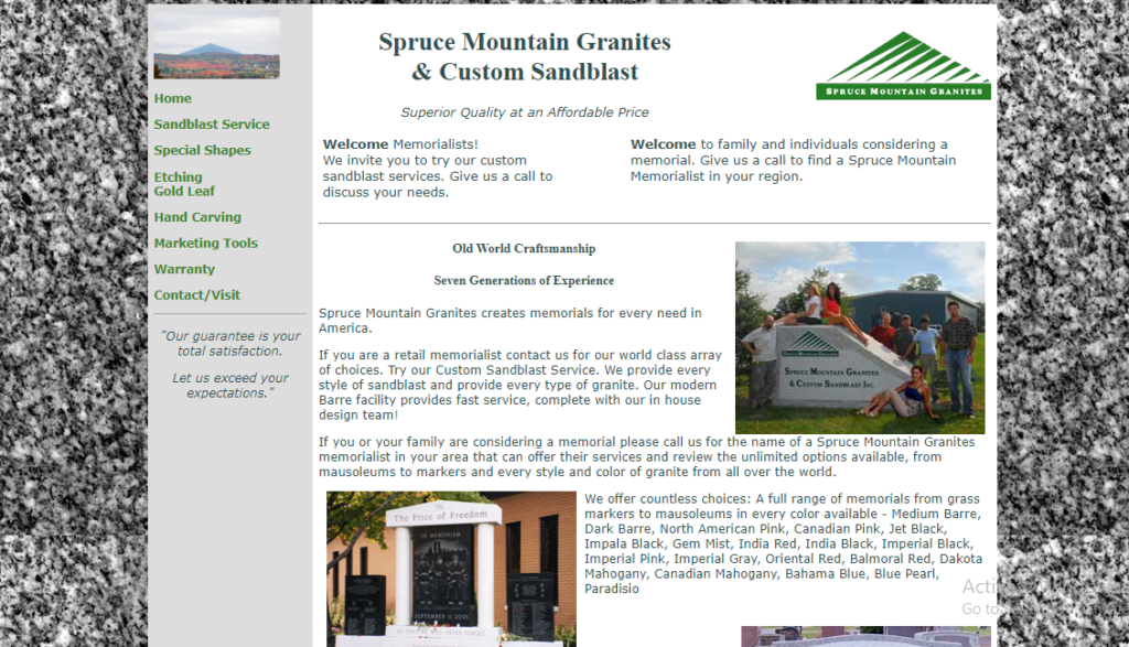 If you or your family are considering a memorial please call us for the name of a Spruce Mountain Granites memorialist in your area that can offer their services and review the unlimited options available, from mausoleums to markers and every style and color of granite from all over the world.