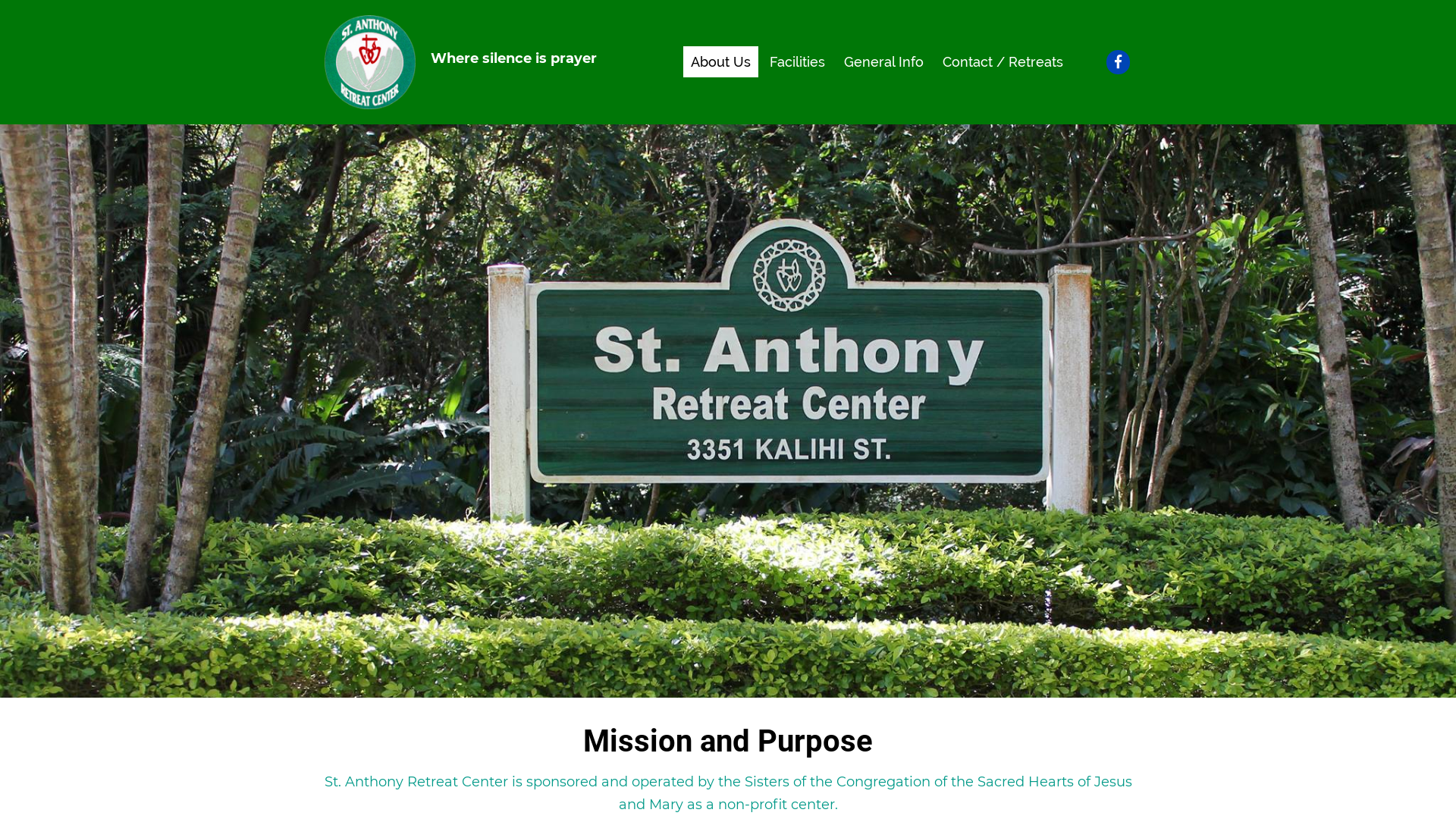 Saint Anthony Retreat Center is sponsored and operated by the Sisters of the Congregation of the Sacred Hearts of Jesus and Mary as a non-profit center. We invite individuals and groups to share the quiet atmosphere of Kalihi Valley in Honolulu. Come here for prayer, reflection, and meditation.