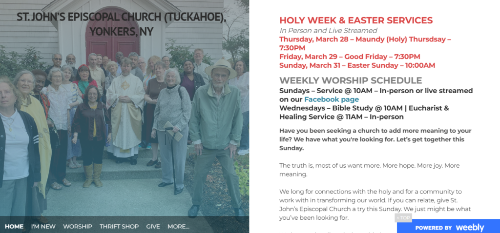 We long for connections with the holy and for a community to work with in transforming our world. If you can relate, give St. John’s Episcopal Church a try this Sunday. We just might be what you’ve been looking for.