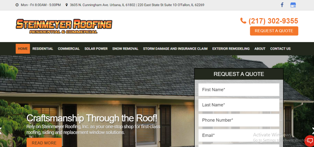 Remodel your residential property and improve its value with quality roofing. Get professional roofing services from the experts at Steinmeyer Roofing, INC. From new construction to roof repair, we do it all. We are licensed and insured for your protection, and we’ve been serving Champaign and Urbana, IL, for over 20 years. You can trust our locally owned roofing company to ensure the job is done right the first time at an affordable price.