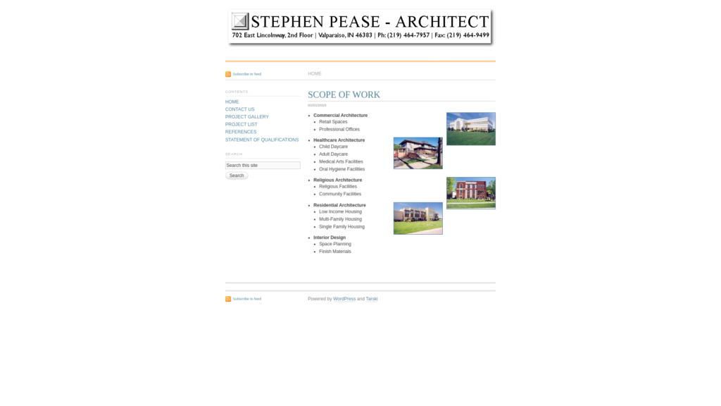 Commercial architecture. Retail spaces. Professional offices. Healthcare architecture child daycare. Adult daycare. Medical arts facilities. Oral hygiene facilities. Religious architecture religious facilities. Community facilities. Residential architecture low-income housing. Multi-family housing. Single-family housing. Interior design. Space planning. Finish materials.