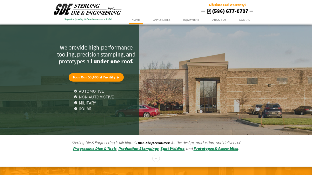 Sterling Die & Engineering is a leading stamping and tooling shop based in Macomb, MI providing nationwide service. Give us a call or tour our 50,000-square foot facility today!