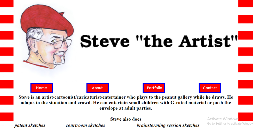 Steve is an artist/cartoonist/caricaturist/entertainer who plays to the peanut gallery while he draws. He adapts to the situation and crowd. He can entertain small children with G-rated material or push the envelope at adult parties.