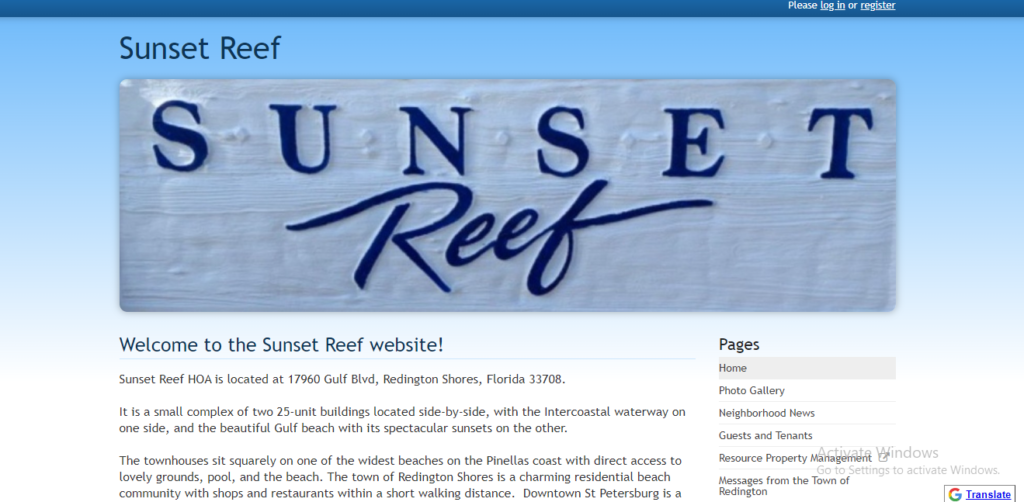 Sunset Reef HOA is located at 17960 Gulf Blvd, Redington Shores, Florida 33708.