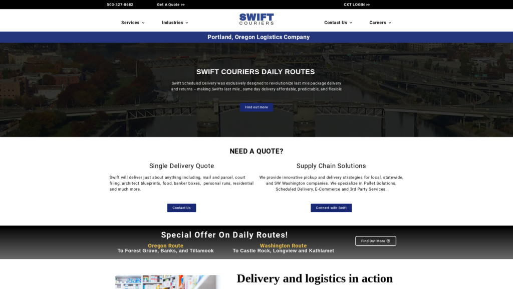 Swift Couriers, a logistics company located in Portland OR, filling the gap between national carriers and unpredictable local pickup & delivery services.