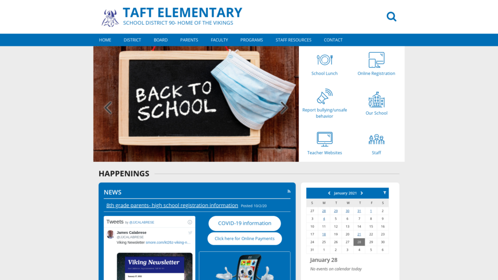 Taft Grade is a one-school district serving roughly 350 Kindergarten through eighth-grade students. After graduating class size is 30-35. Taft’s geographic boundaries limit it to roughly 1 to 1.25 miles square.