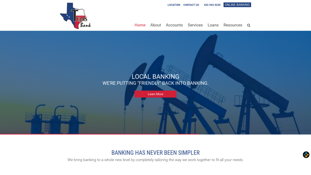 Tejas Bank was established in 2009 by a group of local community leaders with one goal in mind, to offer the best services of today’s financial institutions while maintaining the integrity of a community bank, where all decisions are made locally. At Tejas Bank, we believe in “Putting Friendly Back into Banking” by meeting the needs of the market we serve while providing quality financial leadership and community service. Our employees all have many years of banking experience and are deeply involved in our community. Our goal is to offer our customers the best of service with competitive loan rates, deposit rates, and products that will serve our customer’s needs, including online, mobile, and telephone banking.