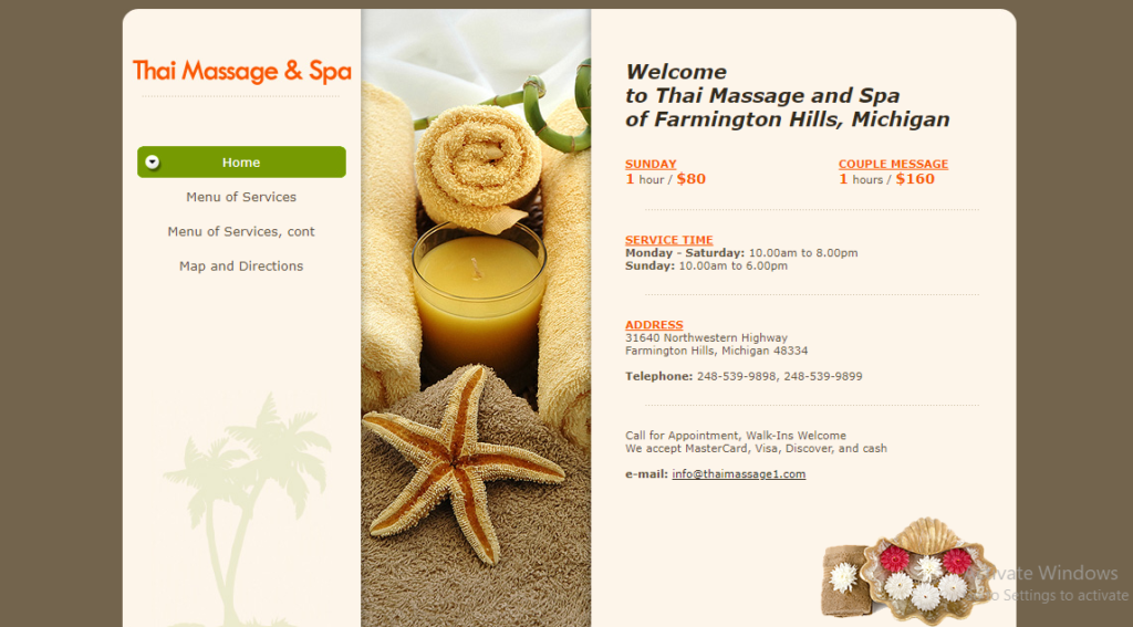 Home » Listings » Thai Massage & Spa May 2, 2023 Thai Massage & Spa Beauty Salons Welcome to Thai Massage and Spa of Farmington Hills, Michigan Add to favourites Report abuse Contact details Please complete the captcha field below to view phone number and/or email address. http://thaimassage1.com WHOIS Created on: 07/19/2017, 11:11AM Last Updated on: 07/20/2025, 05:24AM Expires on: 07/19/2027, 11:11AM Registrant: Organization: Domains By Proxy, LLC State: Arizona Country: UNITED STATES Country Code: US Technical Contact: Organization: Domains By Proxy, LLC State: Arizona Country: UNITED STATES Country Code: US Domain Name: thaimassage1.com Name Servers: Host Names: NS19.DOMAINCONTROL.COM, NS20.DOMAINCONTROL.COM Audit: Created on: 04/22/2026, 13:53PM Last Updated on: 04/22/2026, 13:53PM Registrar: GoDaddy.com, LLC Registrar IANAID: 146 WHOIS Server: whois.godaddy.com Contact Email: abuse@godaddy.com