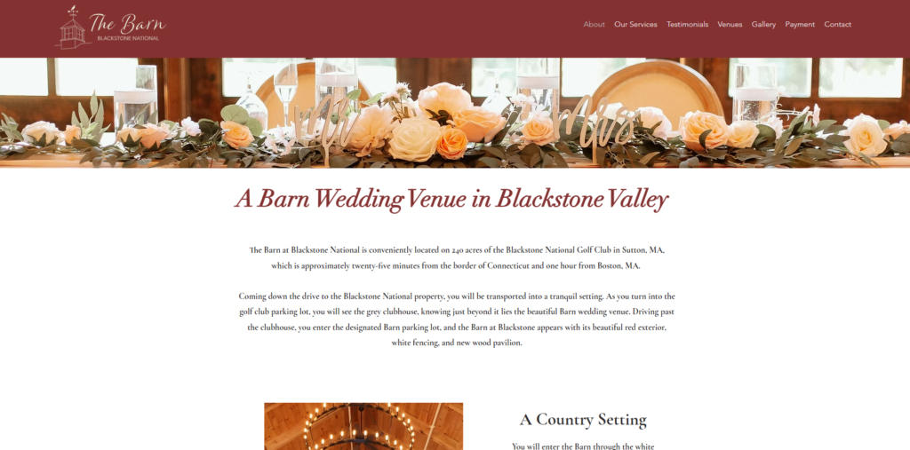 The Barn at Blackstone National is conveniently located on 240 acres of the Blackstone National Golf Club in Sutton, MA, which is approximately twenty-five minutes from the border of Connecticut and one hour from Boston, MA.