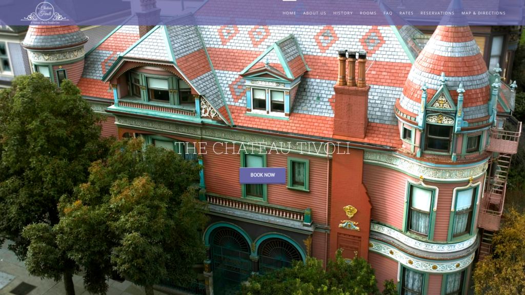 One of San Francisco’s most charming bed-and-breakfast inns, Chateau Tivoli stands as a classic example of the city’s iconic late-nineteenth-century architecture. Located in the beloved Alamo Square Historic District, the 1892 structure originally served as a private home. Lovingly restored a century later and furnished with Victorian antiques, fixtures, and Bradbury wallpaper, the B&B now invites couples, families, leisure, and business travelers to enjoy 9 guest rooms and suites.