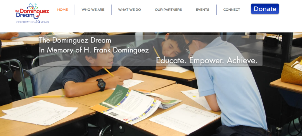 The Dominguez Dream is a public nonprofit organization that is committed to empowering children in underserved communities to achieve their full potential through Literacy and STEAM (Science, Technology, Engineering, the Arts and Mathematics). The Dominguez Dream works to transform the way students learn, by partnering with school administrators, staff and teachers, to identify the areas of greatest need. The Dominguez Dream funds programs around STEAM, Parent Engagement and Literacy. Listen to Edward James Olmos speak about The Dominguez Dream!