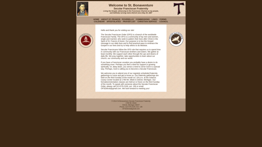 The Secular Franciscan Order (OFS) is a branch of the worldwide Franciscan Family. The OFS is a community of lay men and women, single and married, who seek to pattern their lives after Christ in the Spirit of St. Francis of Assisi. Our purpose is to live the Gospel message in our daily lives and to find practical ways to embrace the Gospel in our lives and try to help others to do likewise.