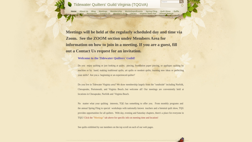 Founded in 1979, the Tidewater Quilters’ Guild provides educational programs and workshops in various techniques relative to the needs of those interested in the art of quiltmaking and similar arts; to educate the public about this fine art; to preserve the tradition, culture, and history of quilts.