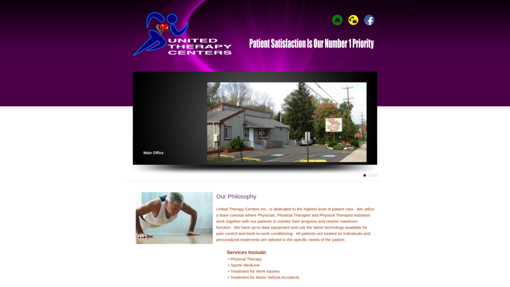 United Therapy Centers Inc., is dedicated to the highest level of patient care. We utilize a team concept where Physicians, Physical therapists, and Physical Therapists Assistant work together with our patients to monitor their progress and restore maximum function. We have up-to-date equipment and use the latest technology available for pain control and back-to-work conditioning. All patients are treated as individuals and personalized treatments are tailored to the specific needs of the patient.