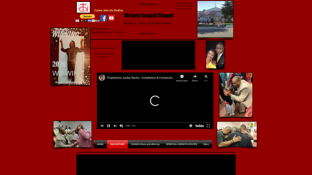 When Victory Gospel was founded in 1992, the sanctuary was the living room of a house on the corner of Montana and Gevers St. Bishop Banks and Prophetess Jackie Banks began the Church and worked diligently with the power of the Holy Spirit motivating and guiding their every move. Evangelism was at the heart of the ministry from its earliest moments and this deep love to share the Gospel sparked growth immediately.