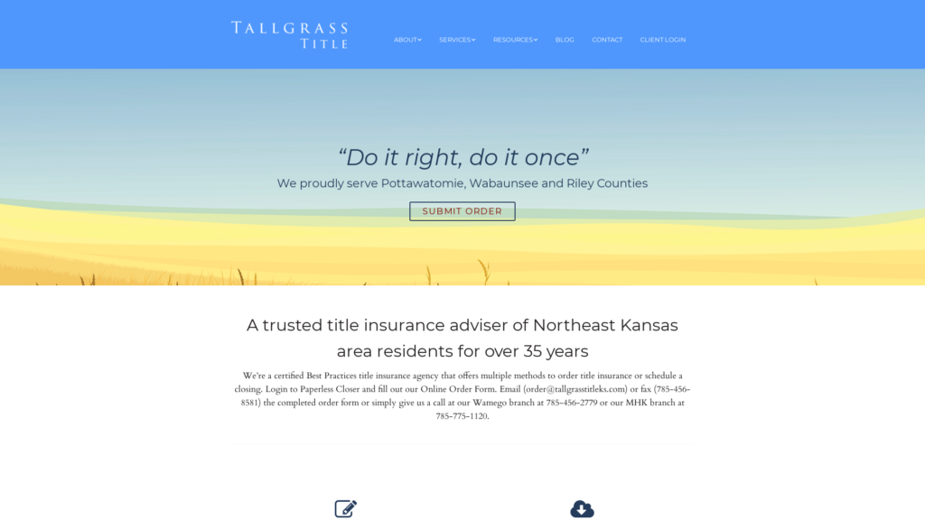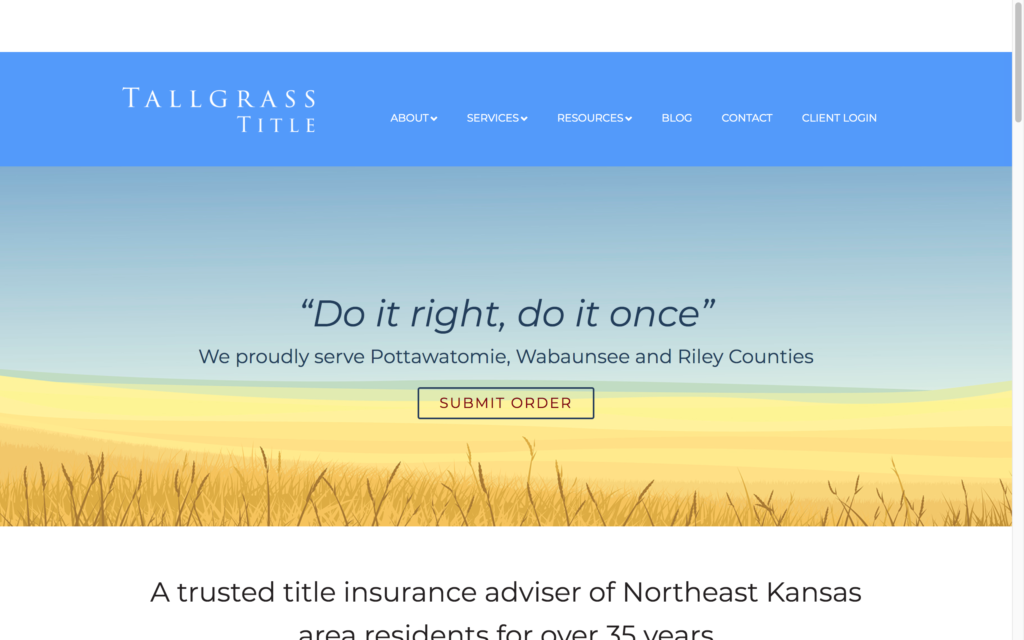 Tallgrass Title is a title insurance agency and land office. We provide a full range of title insurance products as well as closing and escrow services.