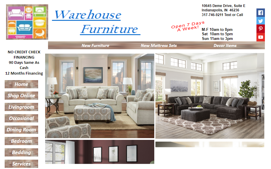 In 2019 we switched to only new furniture, mattress and décor dropping the Estate furniture. We also changed the name to Warehouse Furniture. The second location will open in the North Side of Indianapolis in January 2020.