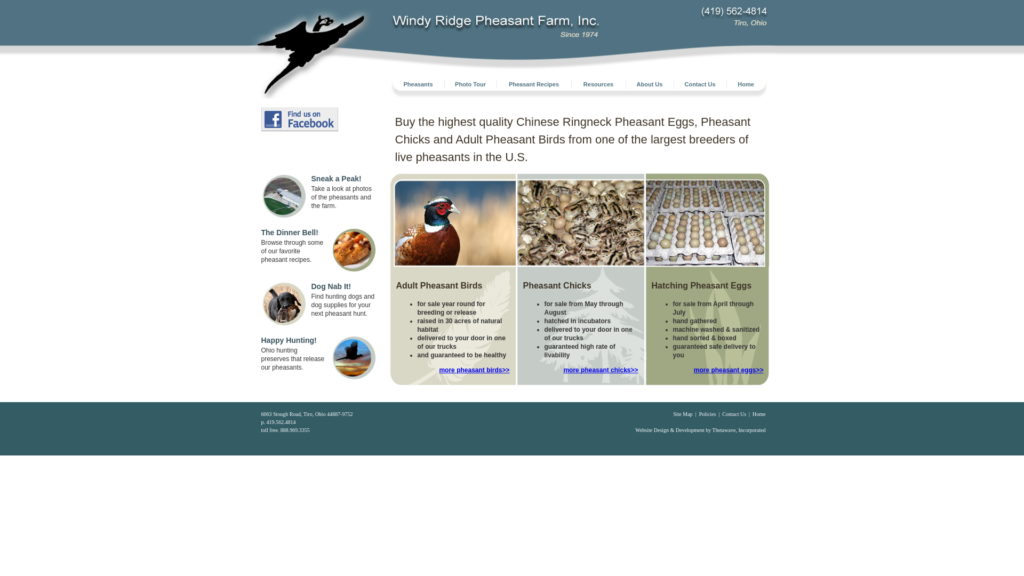 Windy Ridge provides over 30 acres of natural habitat pens for their game birds and state-of-the-art equipment for pheasant feeding and handling. This environment and care ensures excellent conditions for their pheasants at all stages of life and the highest quality pheasant eggs, chicks and mature birds available today.