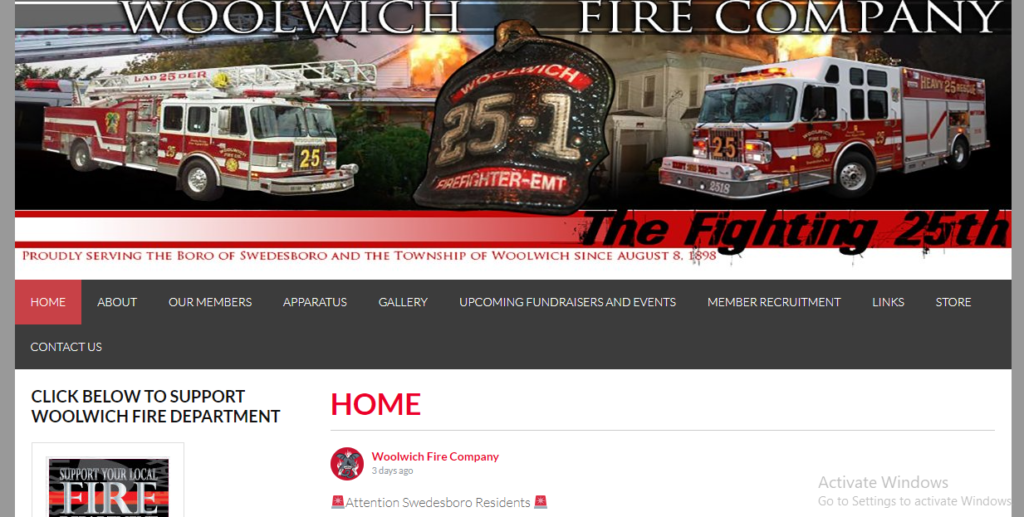 The Woolwich Fire Company was founded August 8, 1898. located at 1517 Kings Highway Swedesboro N.J. We provide fire and rescue service for both the Township of Woolwich and Borough of Swedesboro.