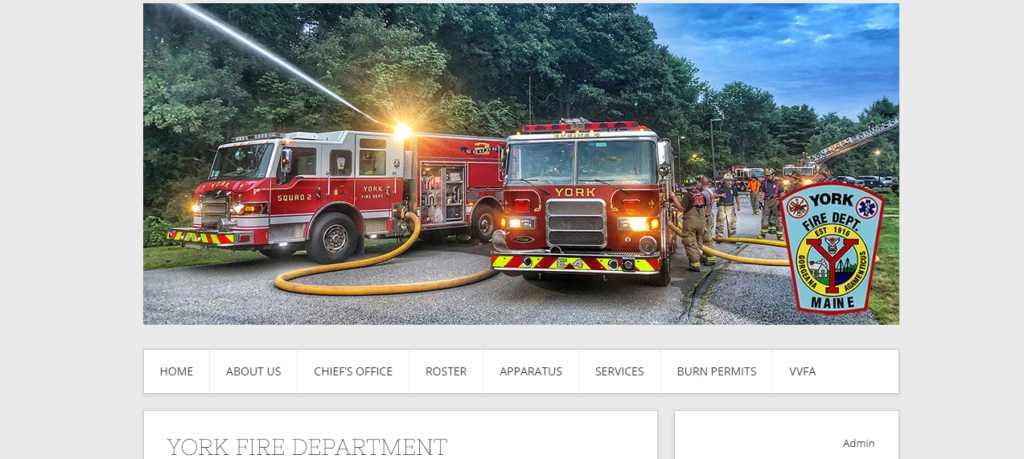 The York Fire Department is one of two fire departments that protect the town of York, Maine. The York Fire Department covers approximately ½ of the 56 Square Miles that York Encompasses. The town has somewhere close to 14,000 year-round residents. The two fire districts have the town split nearly in half with York Fire Department covering the south side of York, including York Harbor and a portion of the west side of town including Chases Pond Rd. and Rt. 91 all the way to the Eliot Line.