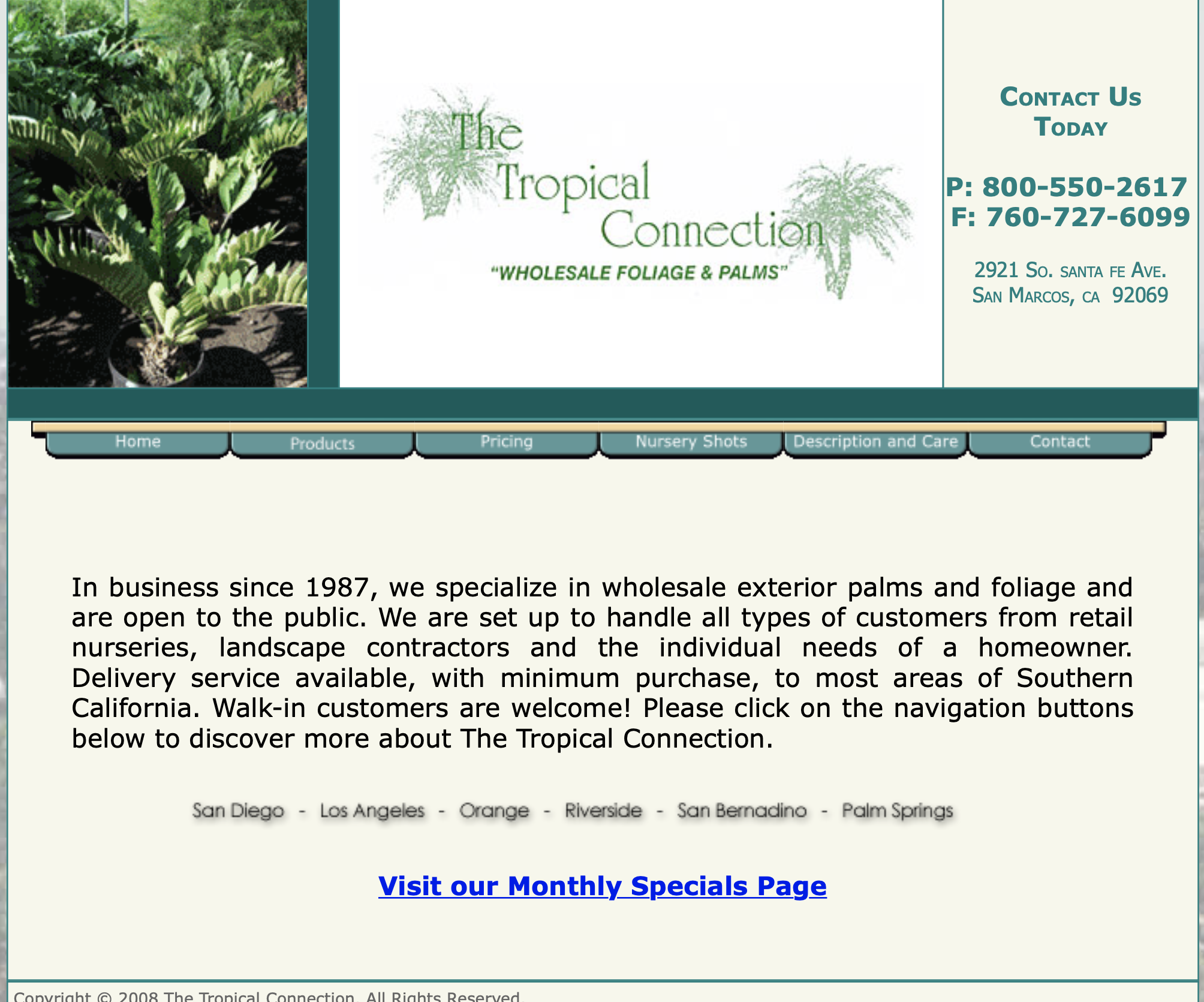 In business since 1987, we specialize in wholesale exterior palms and foliage and are open to the public. We are set up to handle all...
