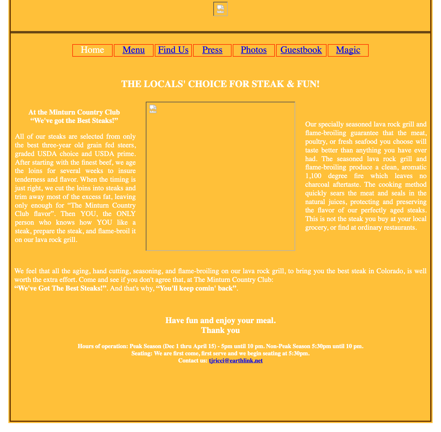 At the Minturn Country Club “We've got the Best Steaks!” All of our steaks are selected from only the best three-year-old grain-fed steers, graded USDA...